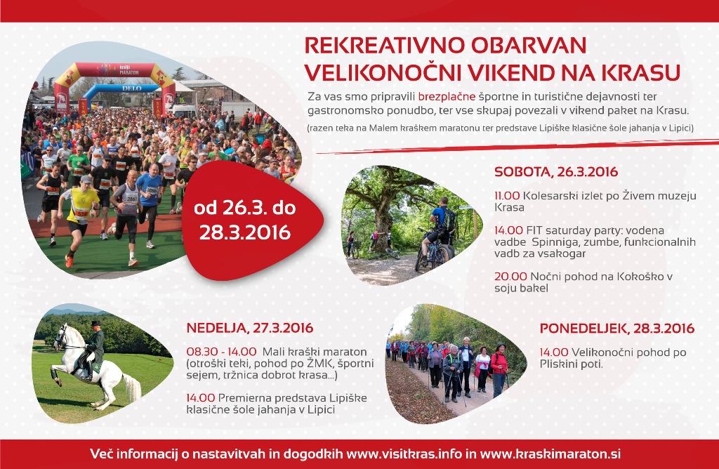 Ob tej priložnosti smo pripravili kratka navodila in napotke, ter okvirni program prireditve. Obveščamo vas, da bomo tudi letos poskrbeli za prijetno vzdušje, ko bomo na štartni ravnini temperaturo dvigali z bogatim spremljevalnim programom. Na sami trasi vam zagotovo ne bo dolgčas, saj bodo za vas navijali Orkester Nika Polesa, mažoretke iz Povirja, harmonikaši, speaker v Bazovici in Orleku ter motivacijske table z mislimi tekaškega trenerja Urbana Praprotnika. Na prenovljenem posestvu v Lipici pa boste ob pogledu na lipicance lahko oči za nekaj trenutkov pustili na paši.