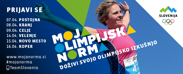 Olimpijski komite Slovenija vam tudi letos ponuja priložnost, da svojo telesno pripravljenost izboljšate pod taktirko ekipe športnih strokovnjakov.  Pridite na enega od dogodkov Moje olimpijske norme, testiratje svojo telesno pripravljenost in dva meseca trenirajte po navodilih ekipe športnih strokovnjakov, ki jo sestaljajo trener, fizioterapevt, športni zdravnik, športni psiholog in specialist za športno prehrano.