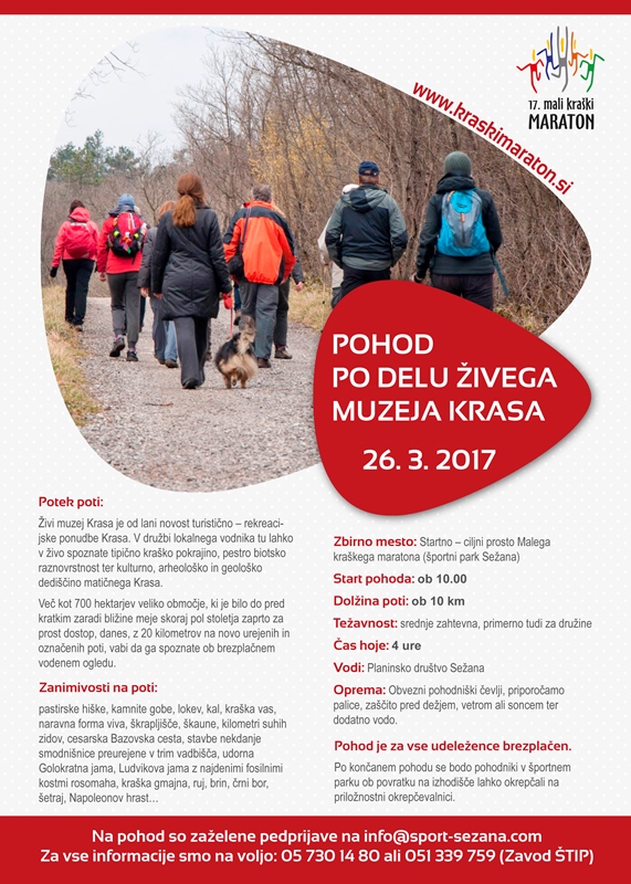 Na pohod so zaželene pedprijave na info@sport-sezana.com