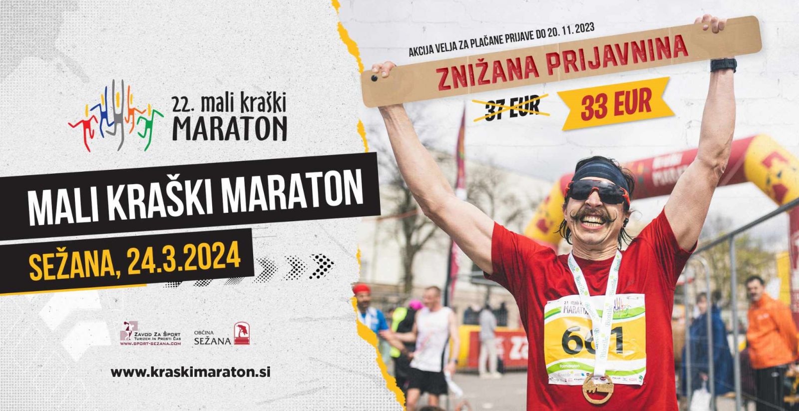 Pridruži se nam v Sežani, 24. marca, 2024, na 22. Malem kraškem maratonu, po najnižji možni ceni, ki velja le do nedelje, 20. 11. 2023. >PRIJAVA<