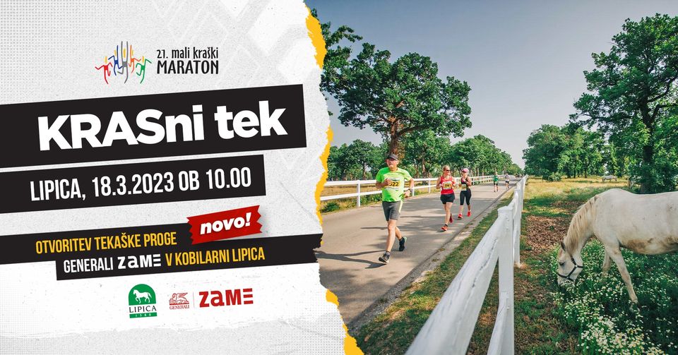 V soboto, 18. marca, vas lepo vabimo na KRASNI TEK, brezplačni skupinski tek v sklopu priprav na 21. Mali kraški maraton in otvoritev nove tekaške proge GENERALI ZAME v Lipici.