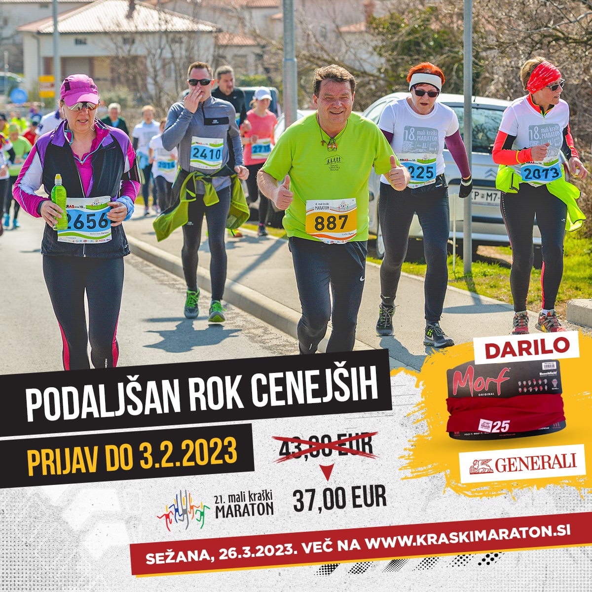 Do petka, 3.februarja, lahko svojo prijavo na MKM še vedno opraviš ceneje. Pa še prvih 100 prijavljenih od tega trenutka dalje prejme darilo Zavarovalnice Generali.