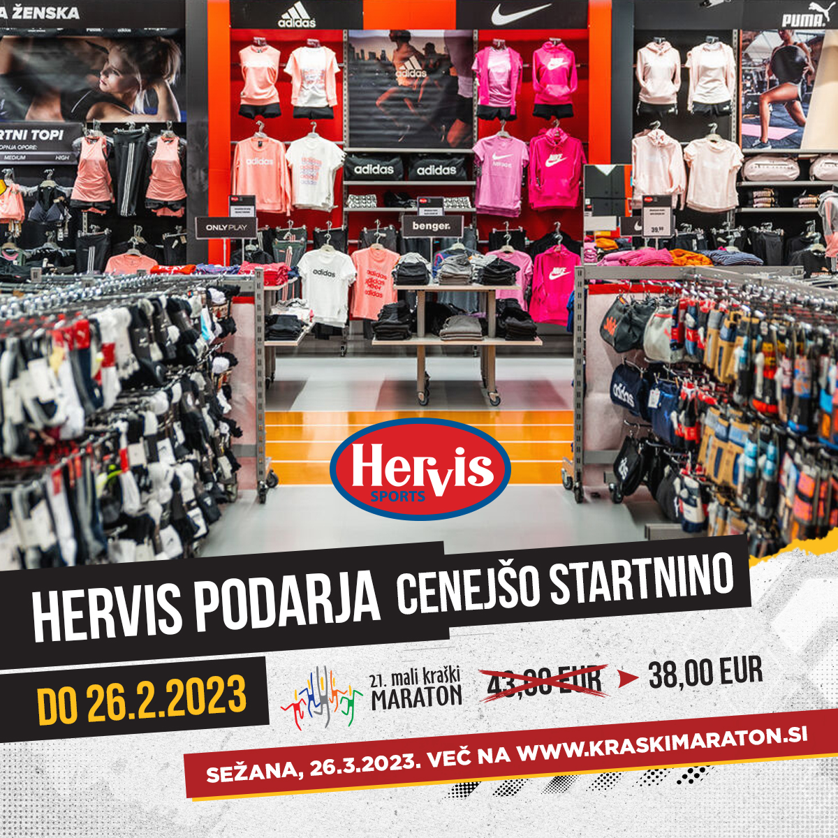 Hervis vsakemu, ki se bo do 26.2.2023 odločil za nakup štartnine na Malem kraškem maratonu, podarja 5,00 EUR.